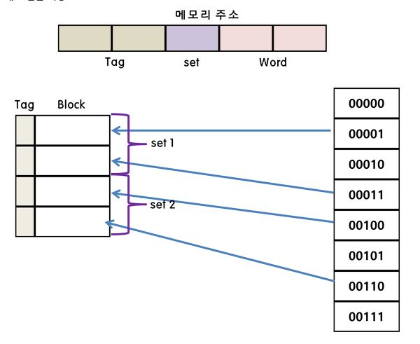 Set Associative Mapping 방법은 기본적으로 direct Mapping과 같으나